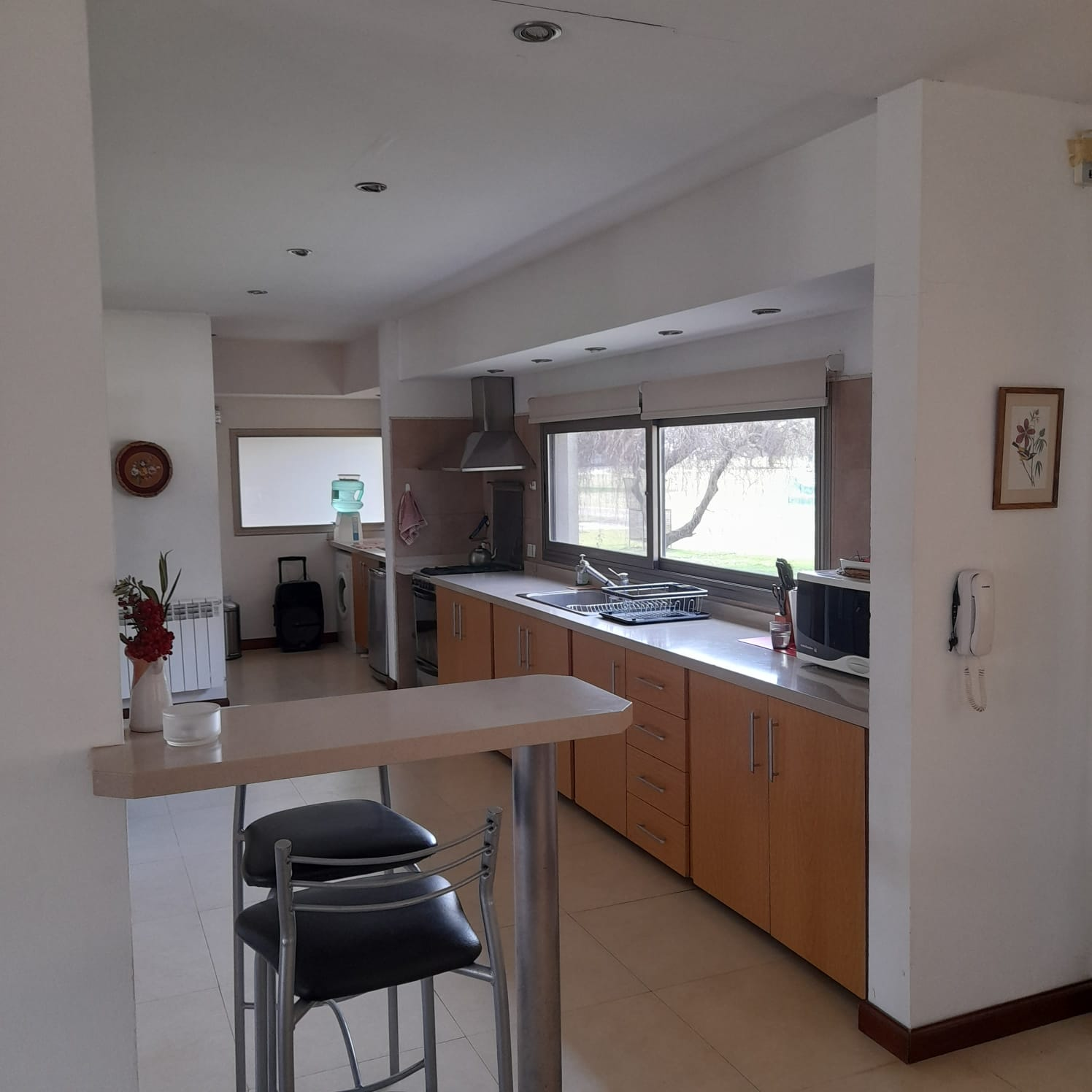 Cocina integrada con barra y comedor diario