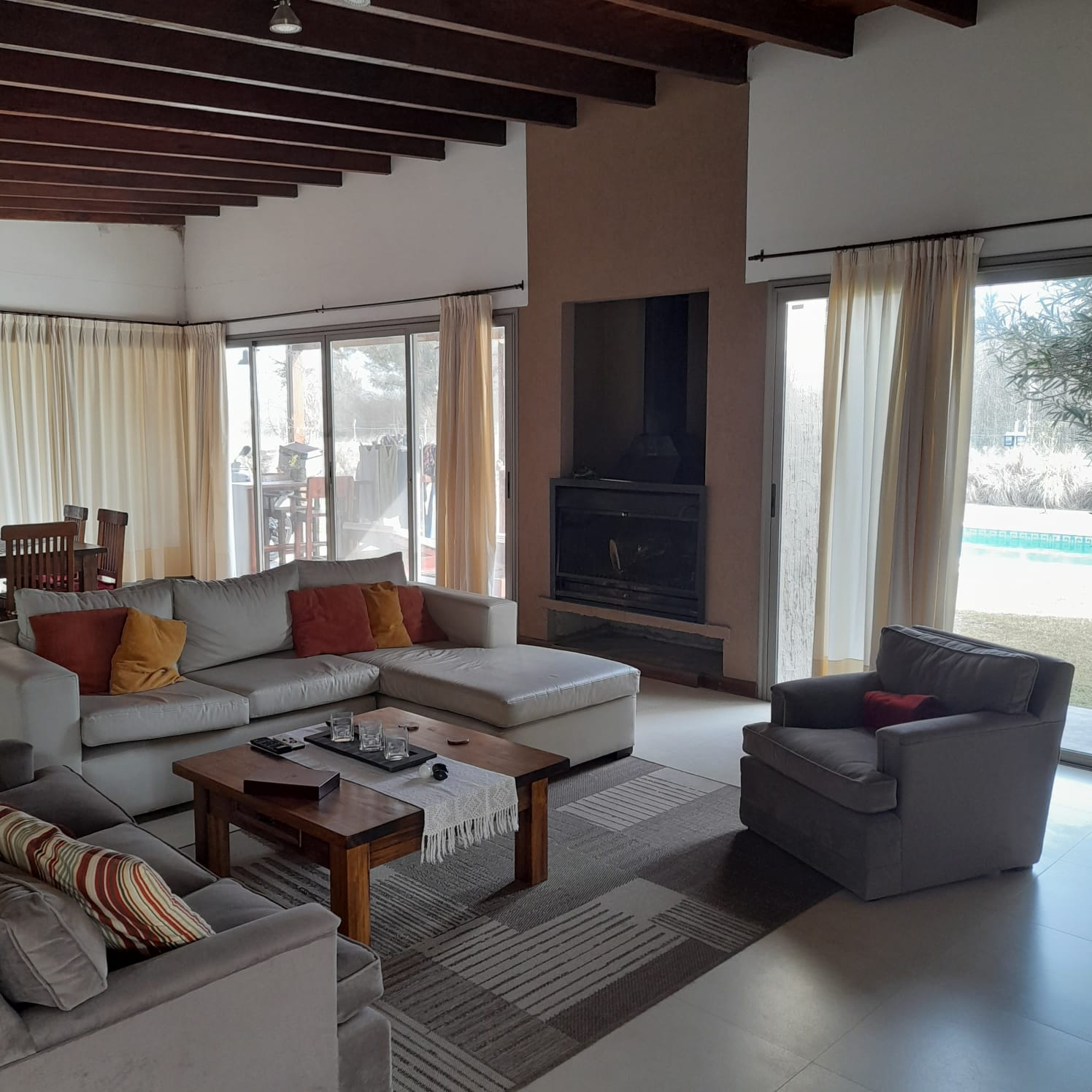 Luminoso living-comedor con vistas al parque y la pileta