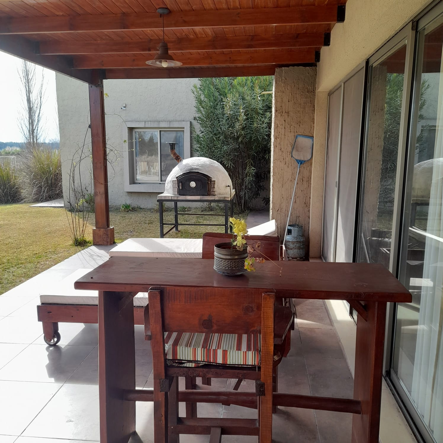 Galería techada con parrilla